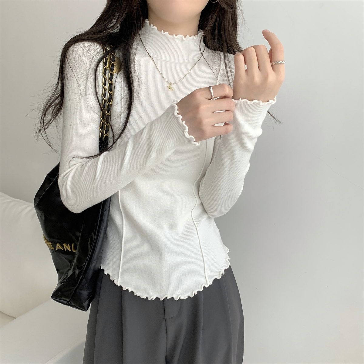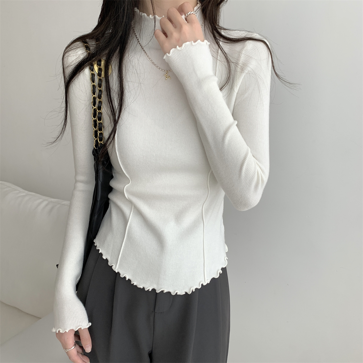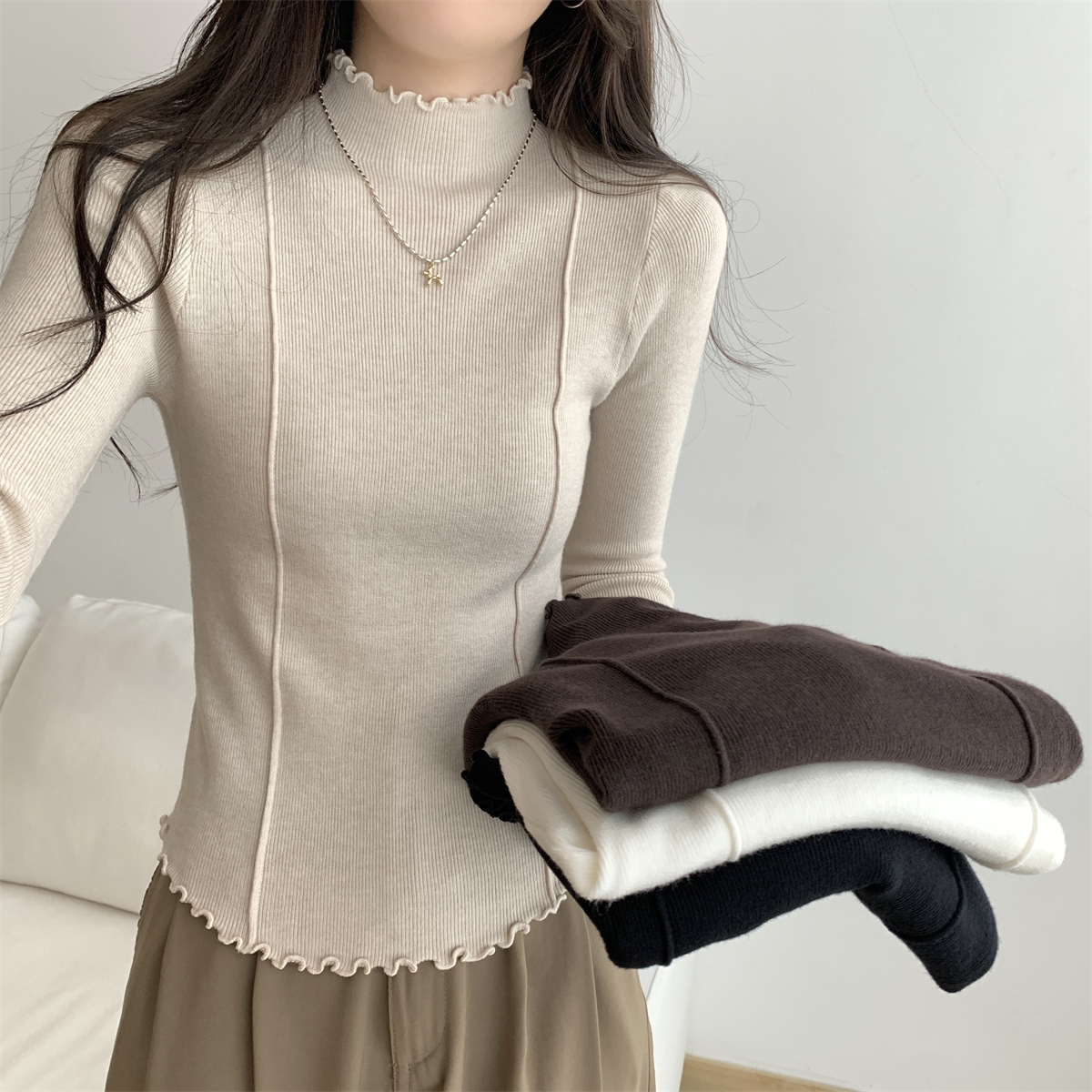 가을 및 겨울 버전 슬림 한 둥근 목 단색 독특한 디자인 및 앤디 벨벳 니트베이스 여성 스웨터
