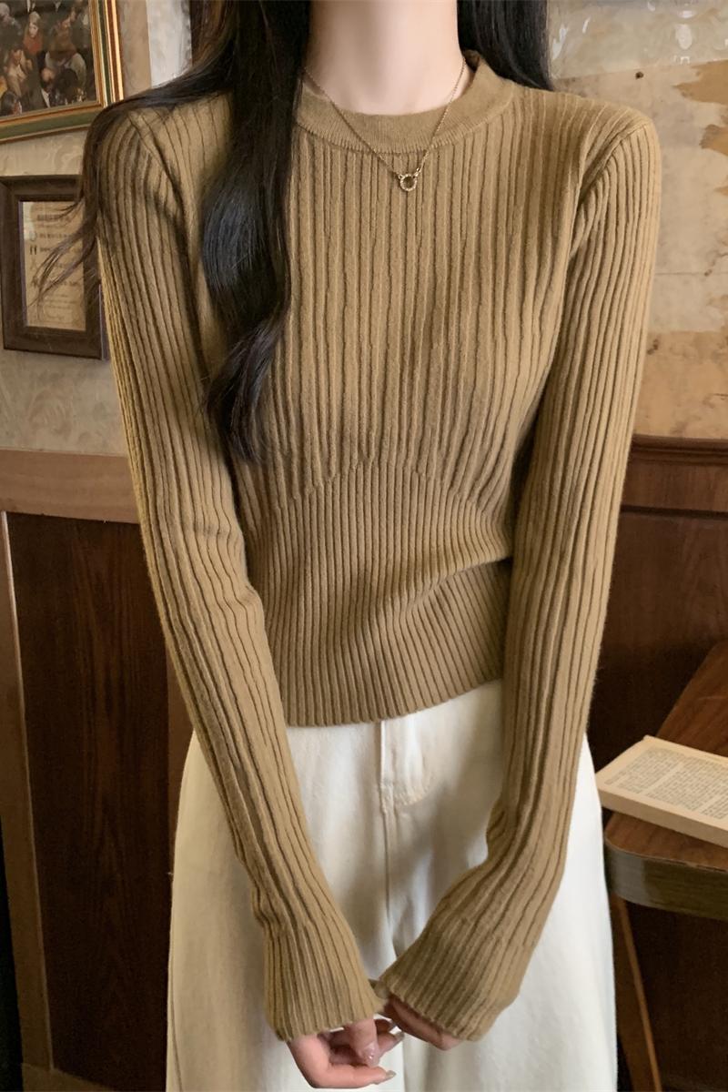 여성을위한 줄무늬 다목적 니트베이스 셔츠를 가진 실제 한국 스타일 슬림 정사각형 칼라