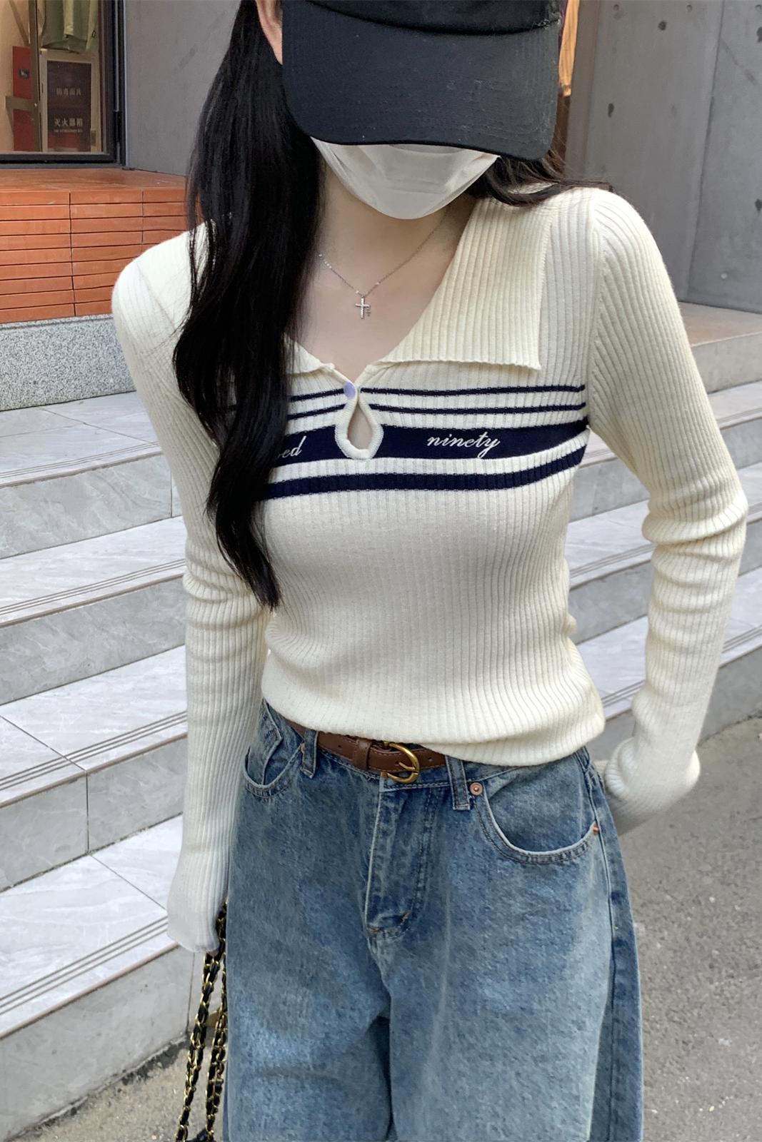 실제 사진 및 가을 및 겨울 대조 색상 가짜 2 피스 디자인 감각 내부 피팅 기질 니트베이스 스웨터 탑