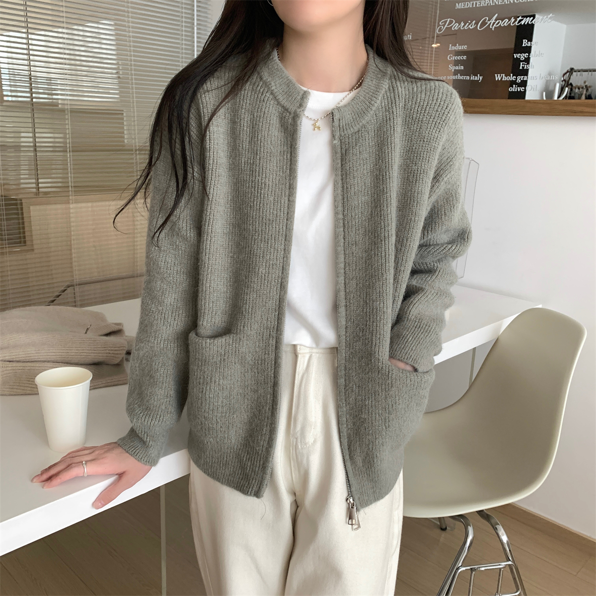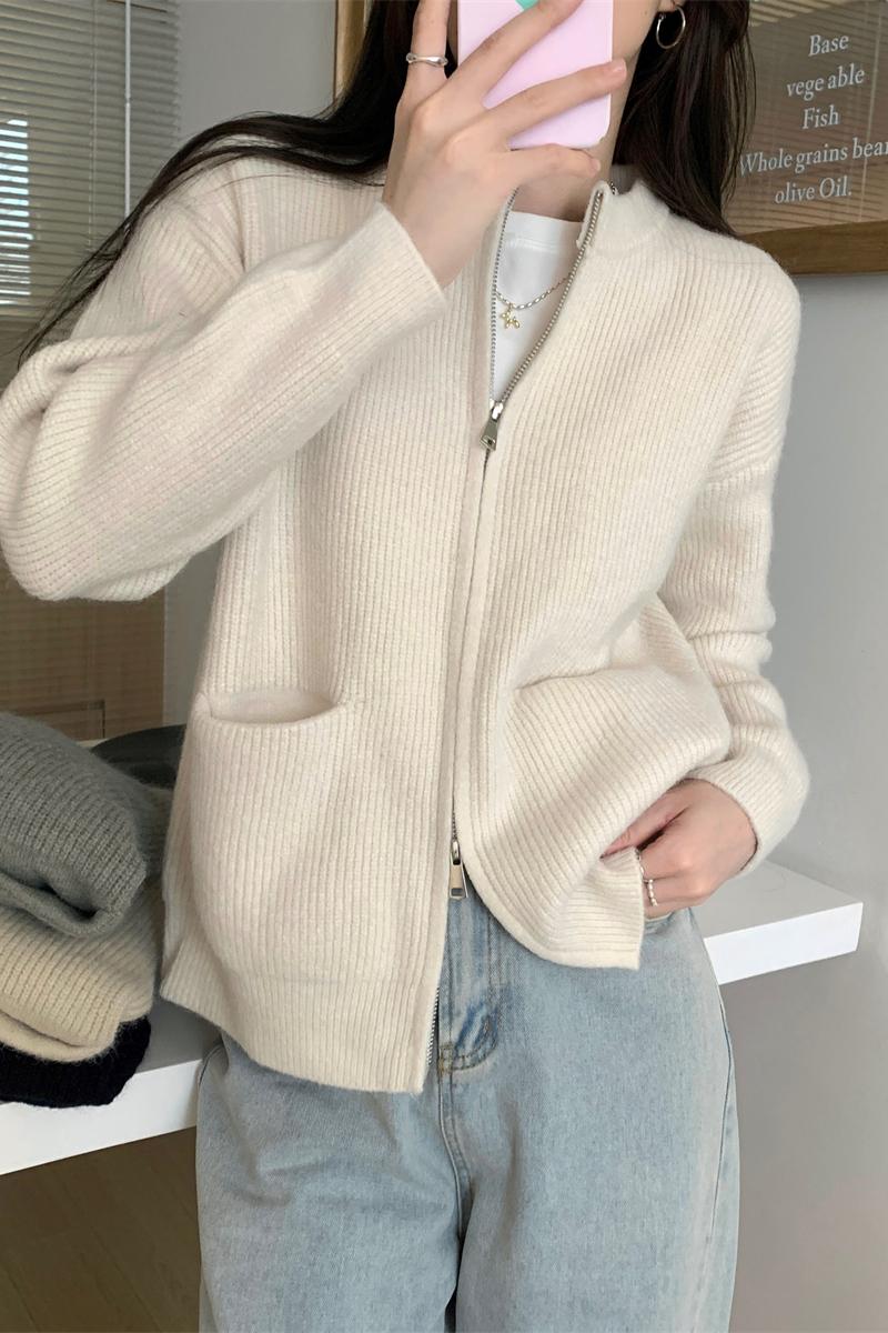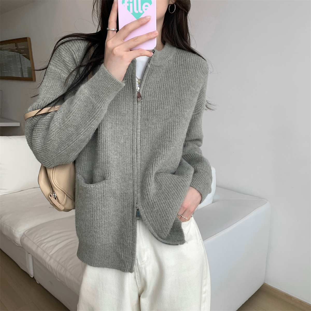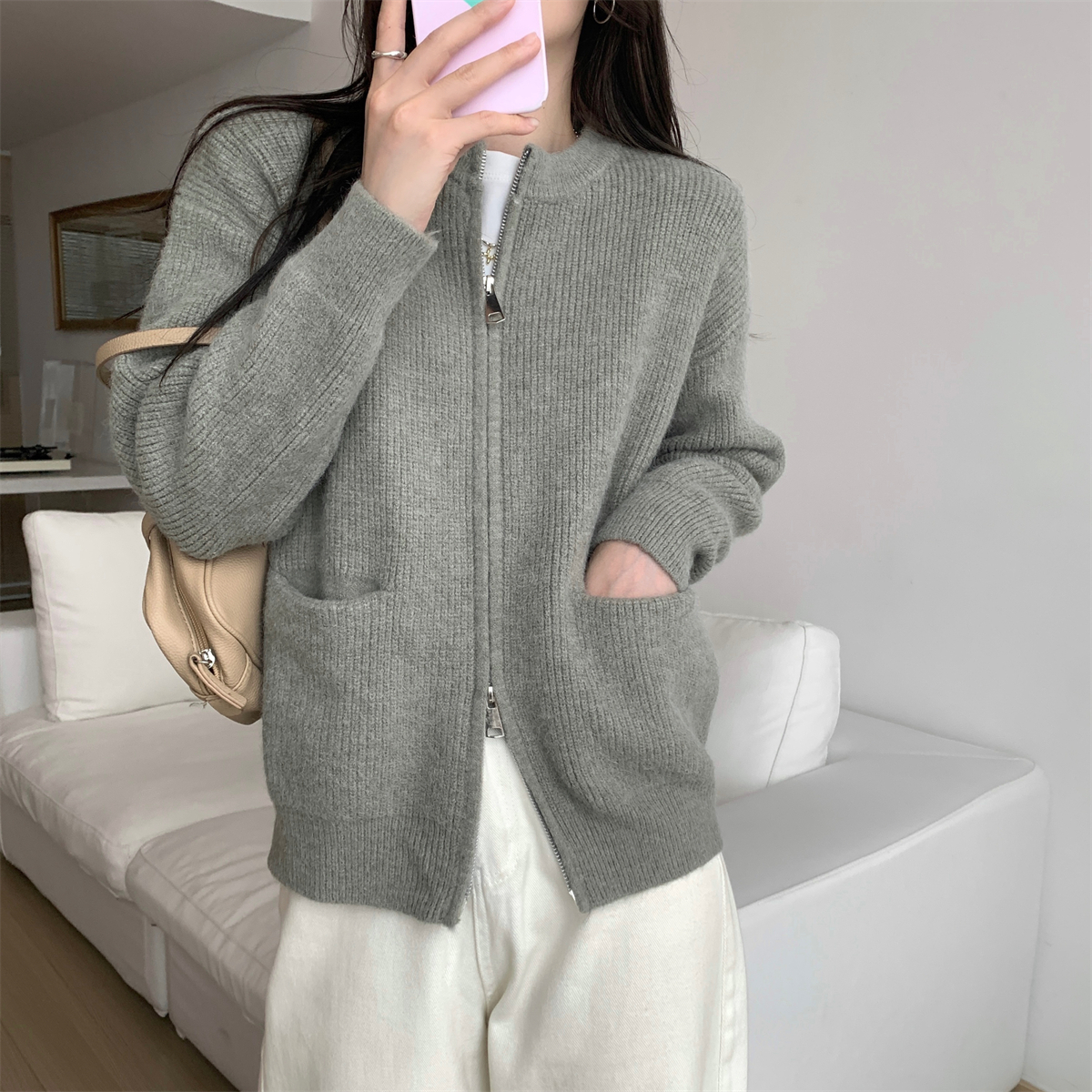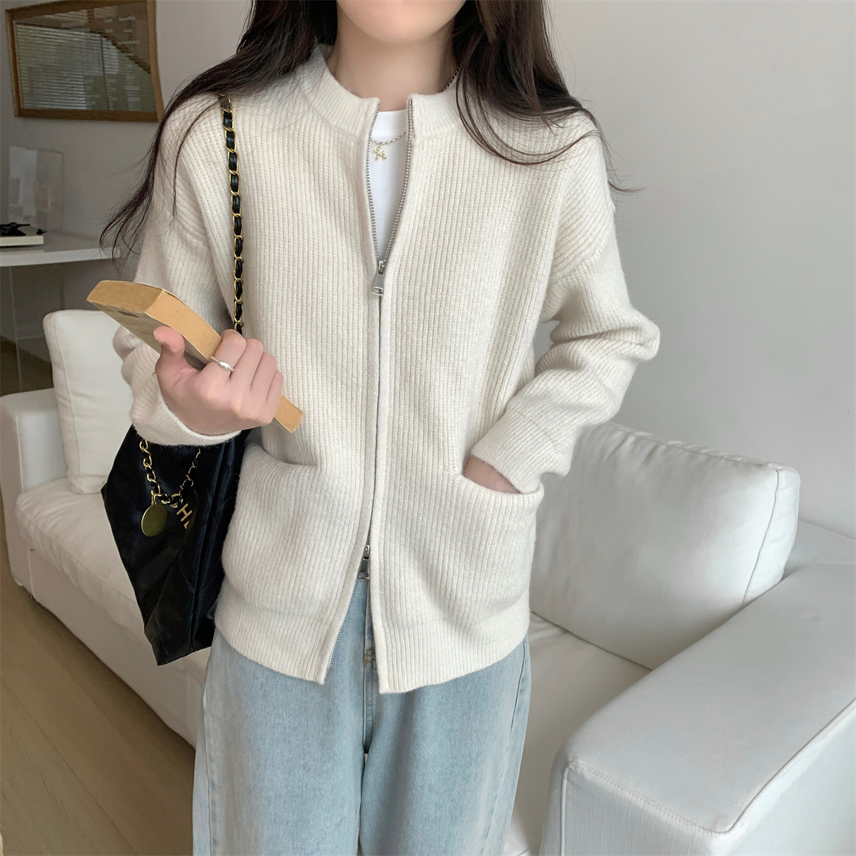 한국 스타일 슬림 한 반 높이 넥 라인 기질 중공 앤디 벨벳 내면 니트베이스 여성 스웨터