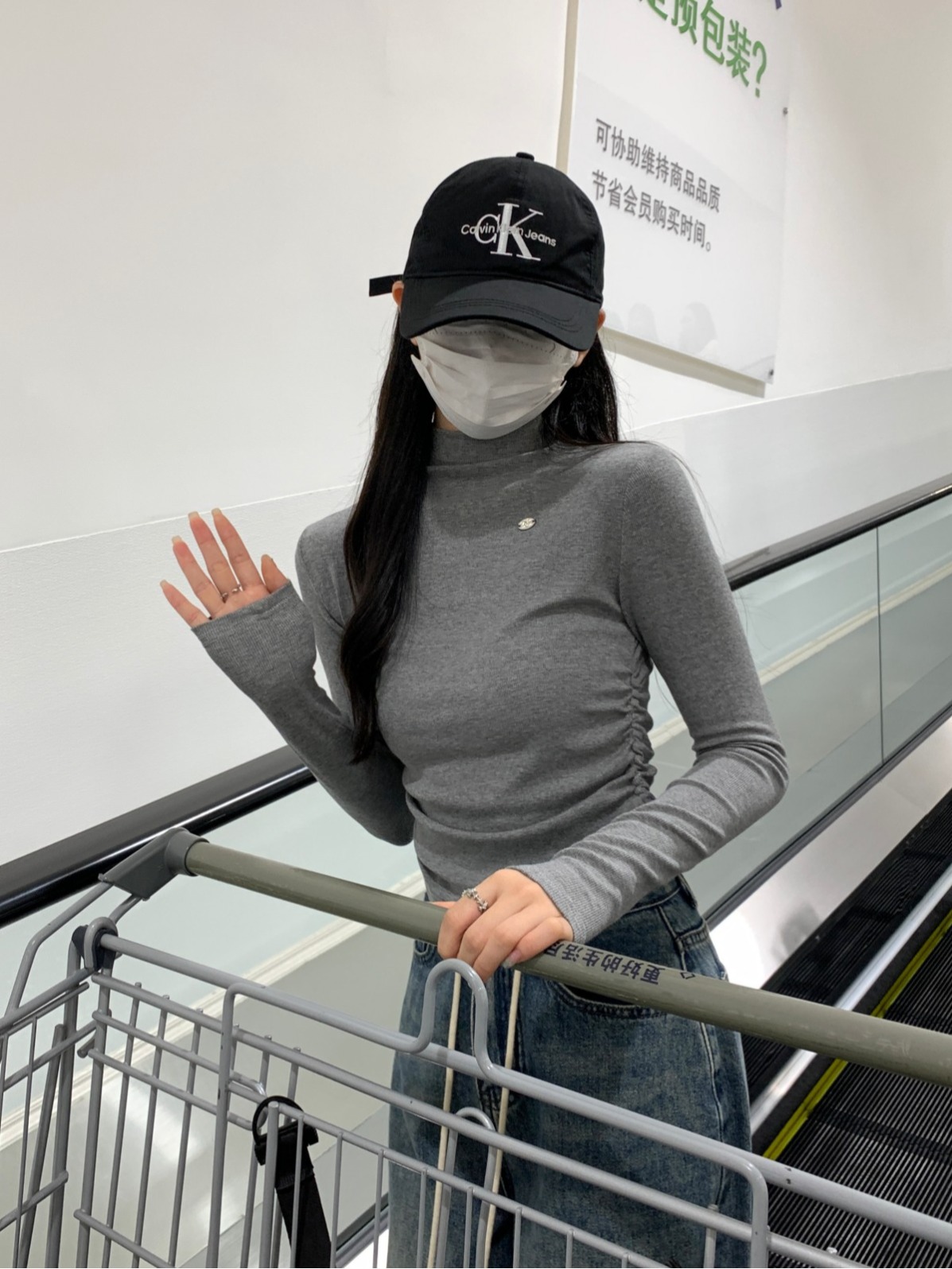 반 높이의 목 검은 귀 생선 뼈 독특한 디자인 슬림베이스 니트 스웨터의