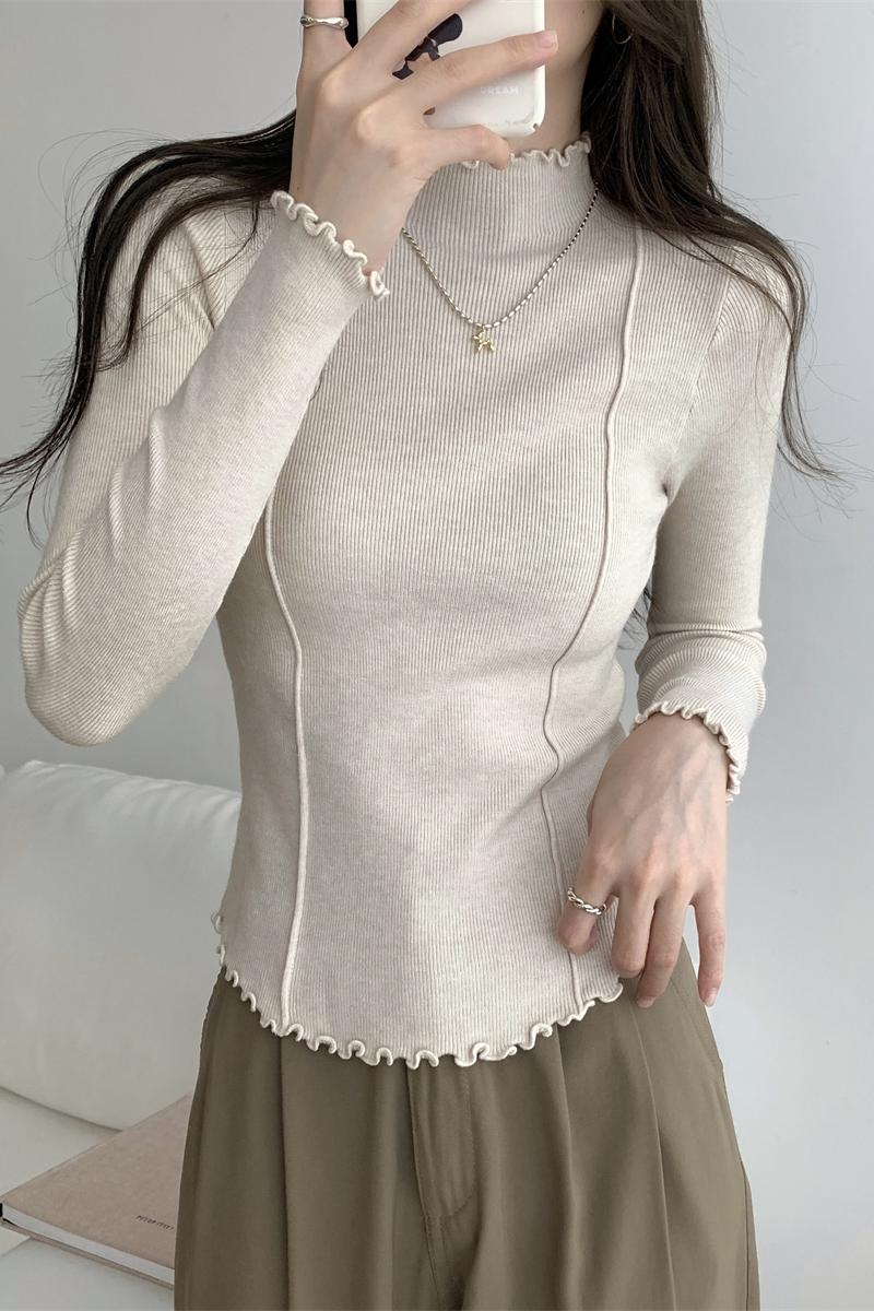 실제 사진 및 한국 스타일 슬림 버튼 디자인 단색 다목적 니트베이스 셔츠 여자 스웨터 탑