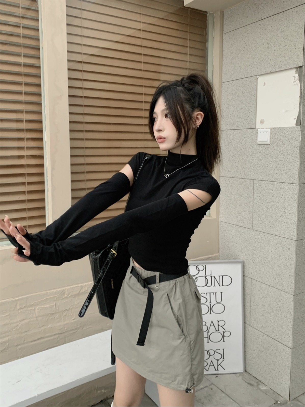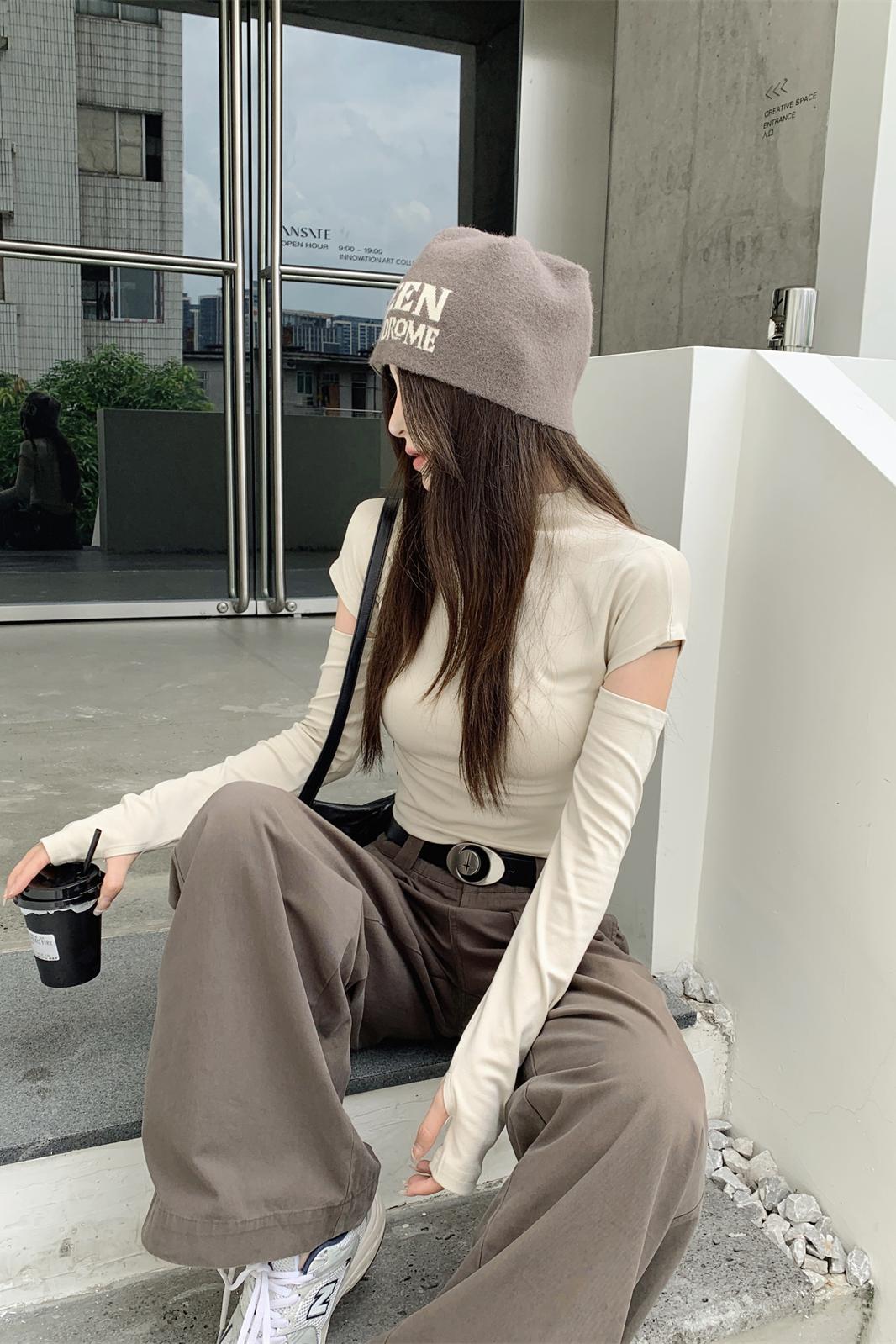 실제 사진 가을 겨울 v- 넥의 가짜 2 피스 대조 주름진 디자인 다목적 니트베이스 탑 스웨터