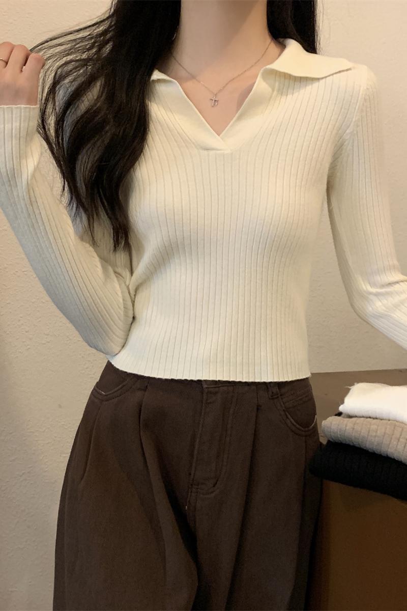 가을 겨울 슬림 폴로 칼라의 여성을위한 다용도 단색 기본 니트 스웨터 속옷