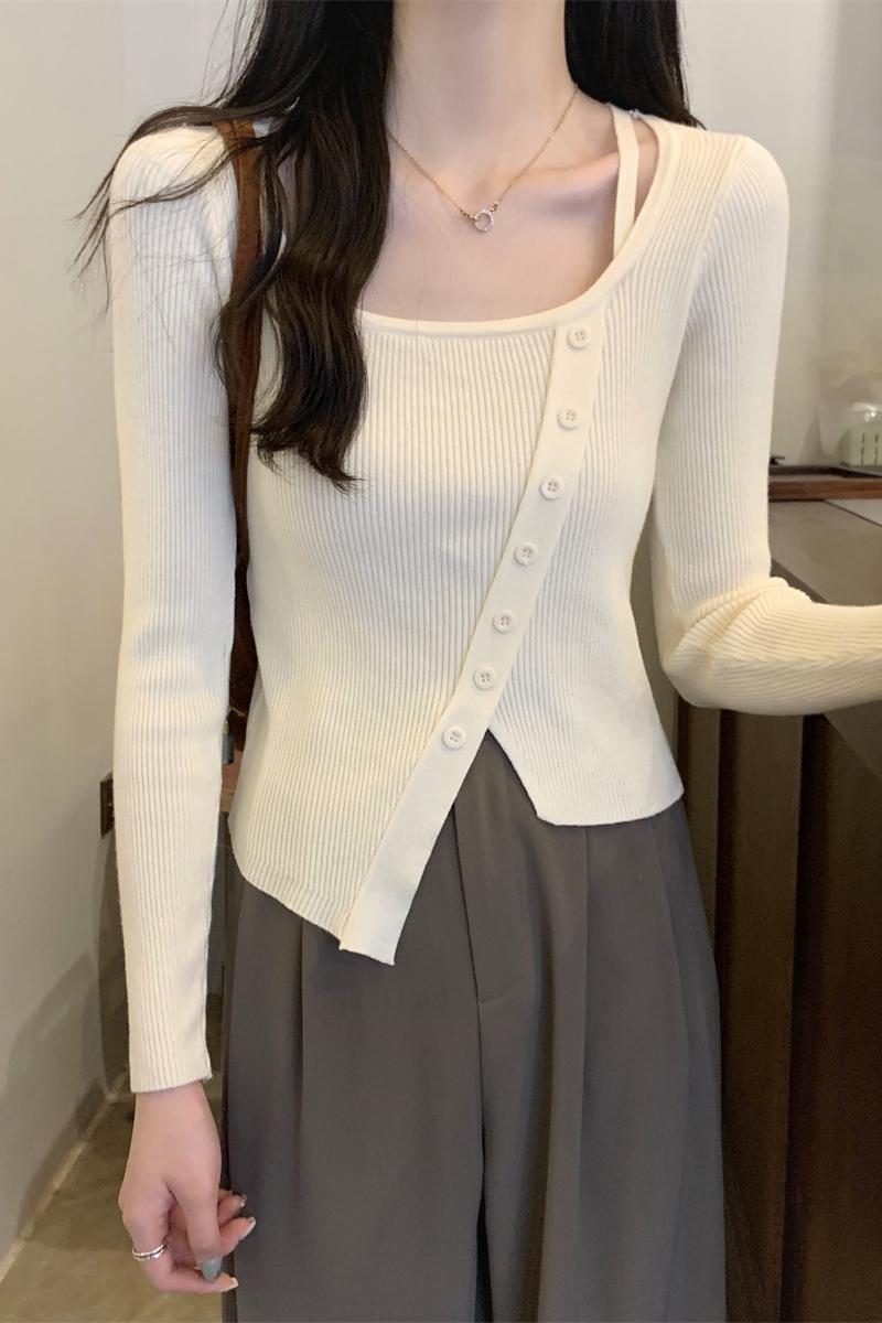 한국 스타일 슬림하고 다재다능한 생선 뼈 짧은 디자인 및 여성용 니트베이스 셔츠