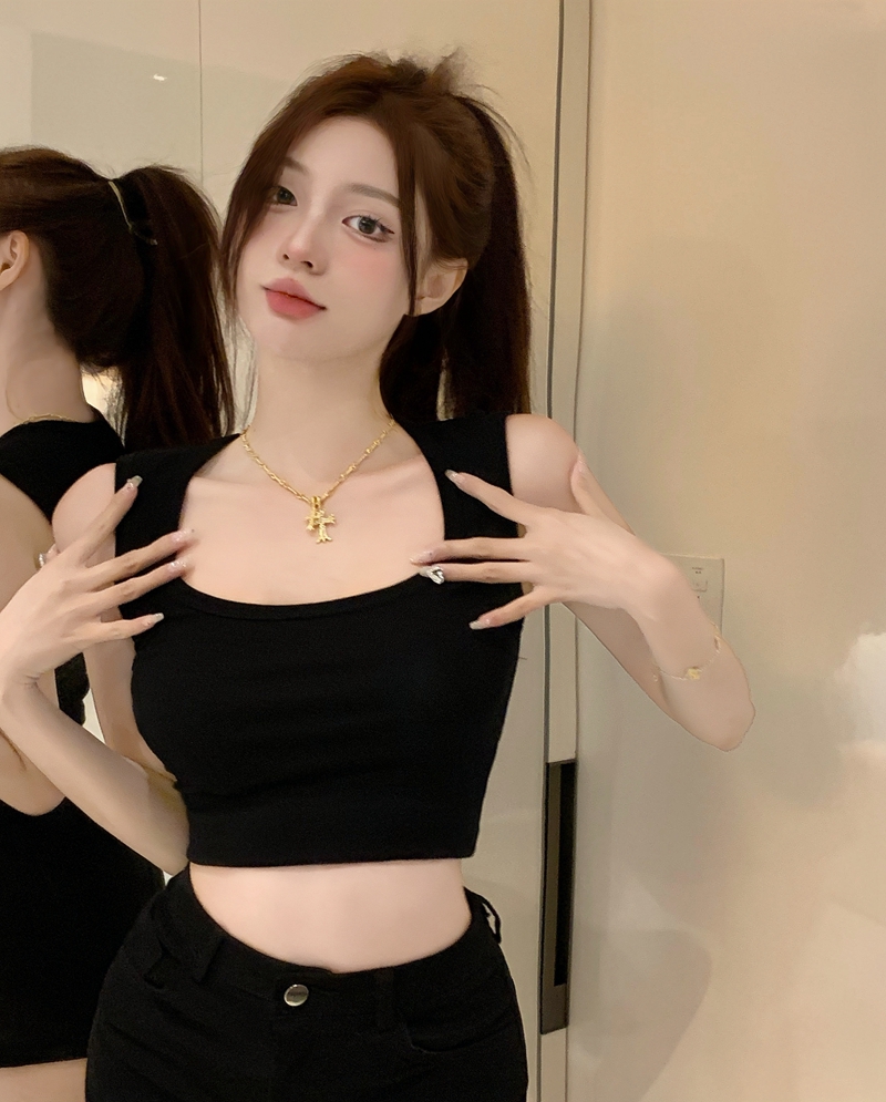 진짜 가격 여름 순수 욕망 사각형 칼라 기본 단색 가슴 조끼 안식