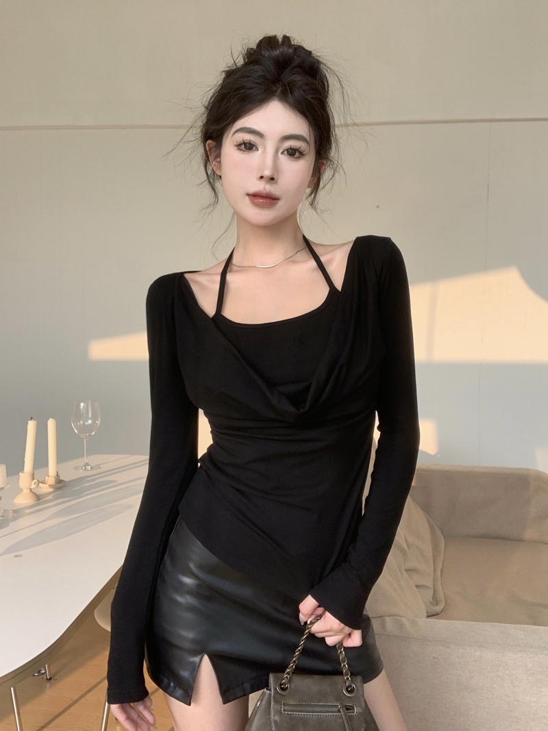 Real-Price Pure Desire Style Neck Swaying Collar 니트베이스 셔츠 Slim Fit 및 Slim 두 섹시한 내부베이스 셔츠