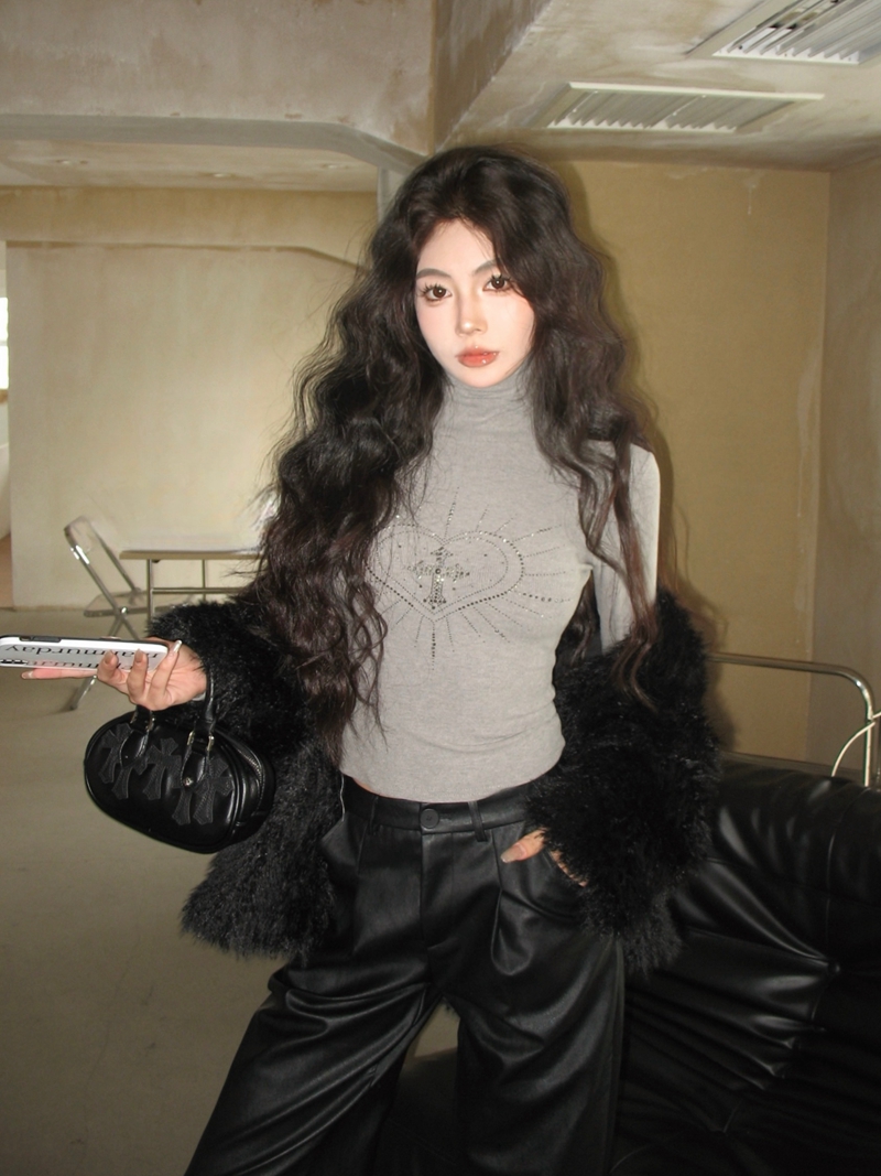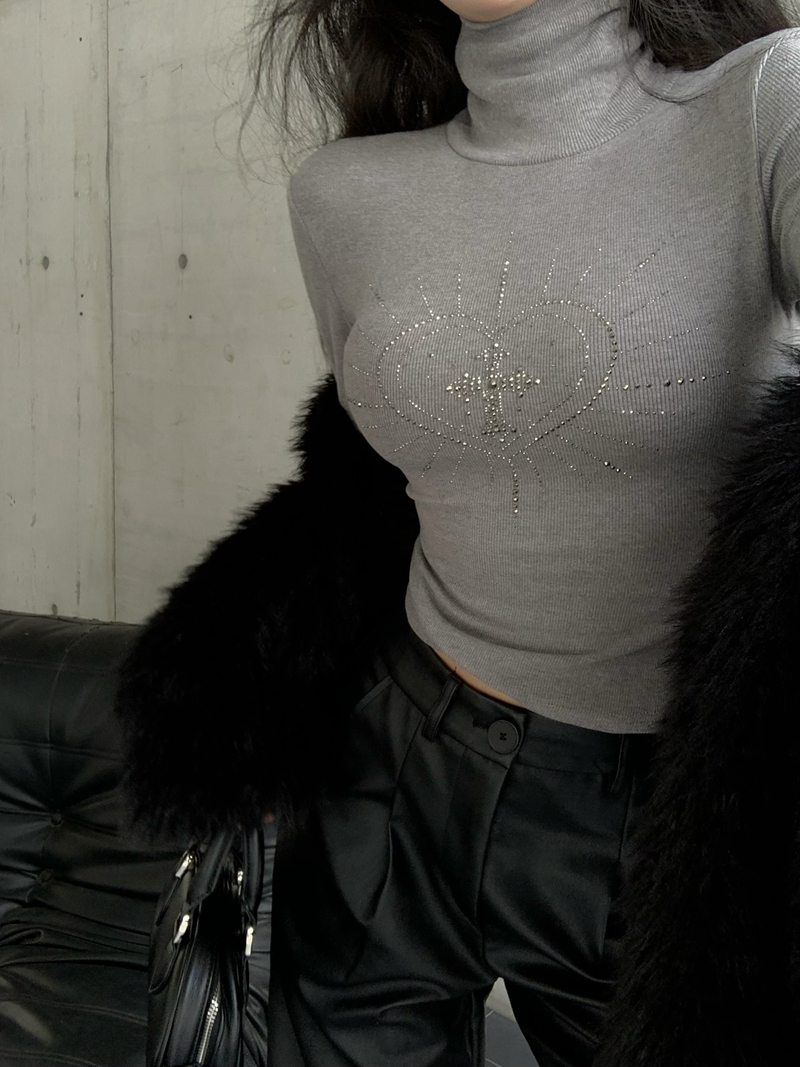 실제 가격 겨울 무료 다목적 기본 다리미 다이아몬드 터틀넥베이스 셔츠 슬림 짧은 내부 긴팔 상단