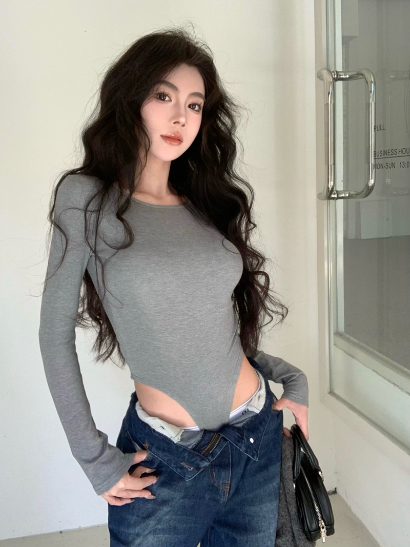진짜 가격의 섹시한 핫 걸 스타일 니트 점프 슈트 슬림 한 긴팔 플러스 벨벳 내부 바닥 셔츠 탑
