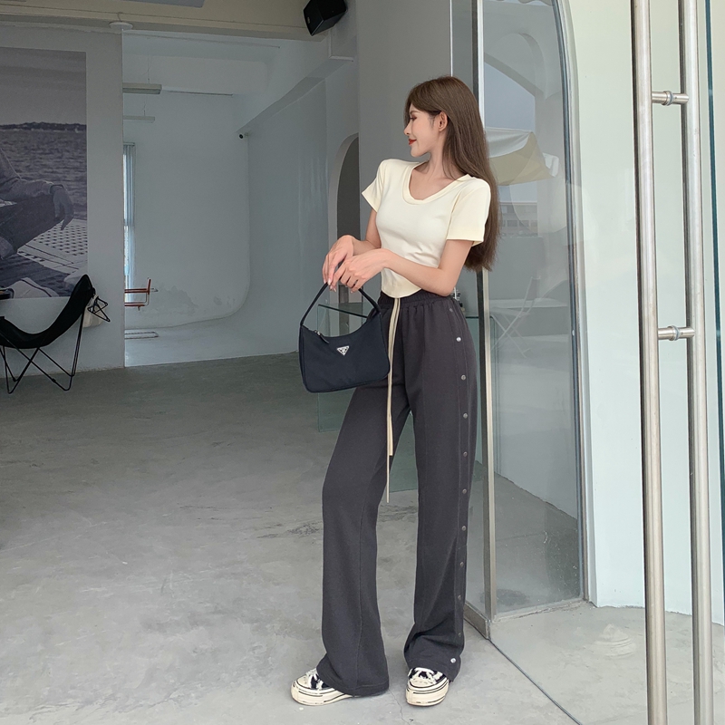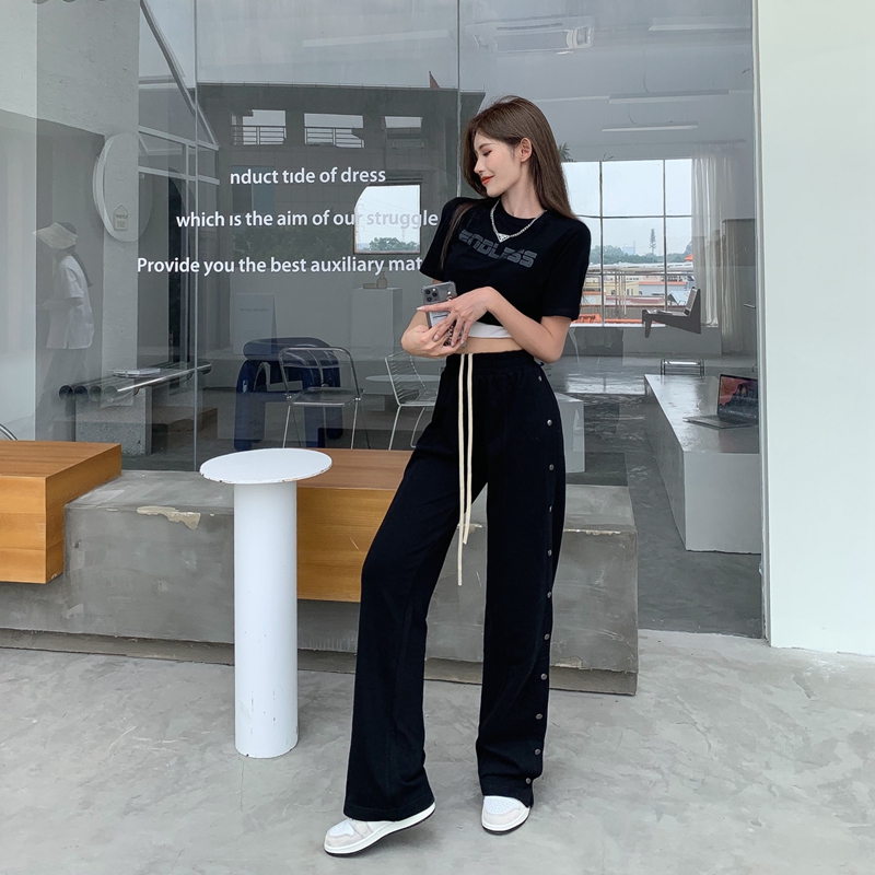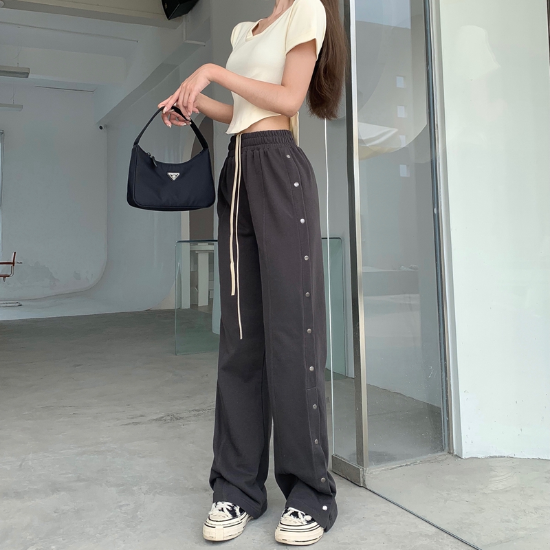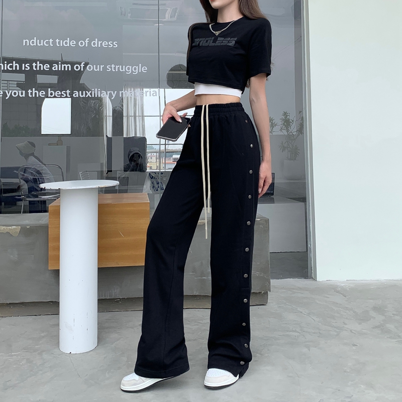 실제 사이드 가슴 바지, 느슨한 스트레이트 버튼 캐주얼 스포츠 바지, 하이 스트리트 스타일 스웨트 팬츠, 남성과 여성을위한 같은 스타일