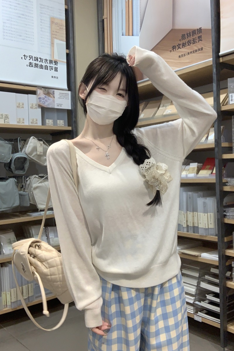 실제 사진과 실제 가을 한국어 버전 순수 욕망 v- 넥 단순하고 다재다능한 단색 앤디 벨벳 스웨터 롱-슬리브 스웨터 탑