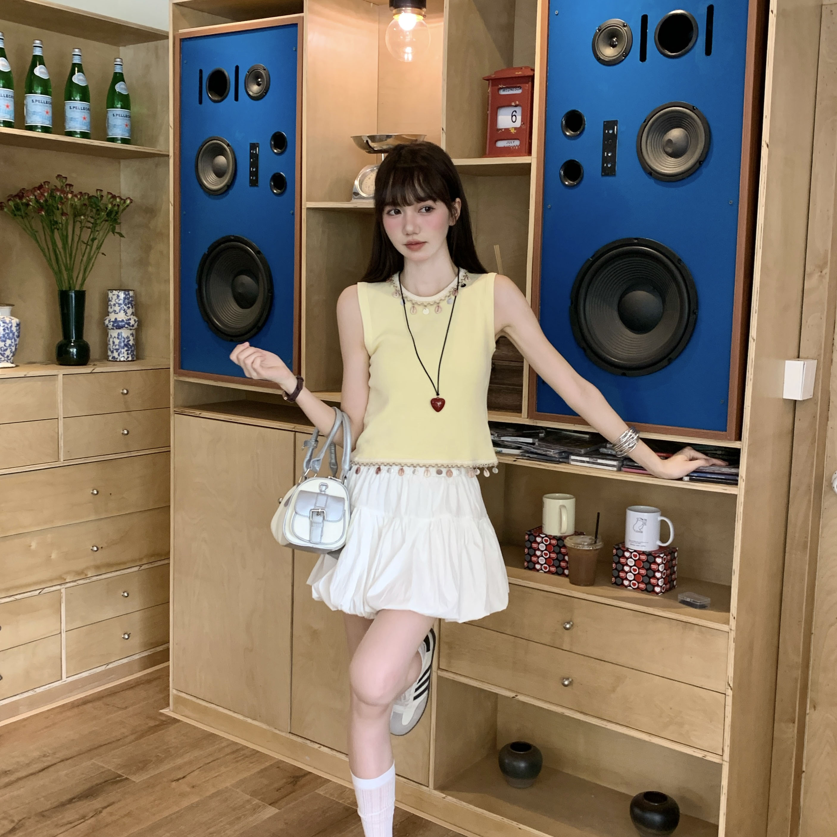 실제 가격#중공업 쉘 술집 얼음 얼음 실크 니트 조끼는 Chadopamine 복장 Hot Girl Short Style을 착용 한 여성을위한 여성을위한