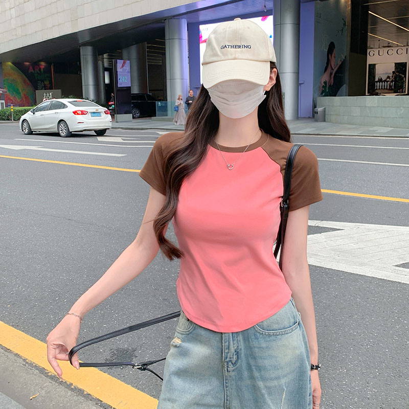 실제 샷 및 실제 가격#디자인 감각 레트로 레트로 라글란 여성용 티셔츠 2025 New Summer INS 치카 슬림 보디웨어