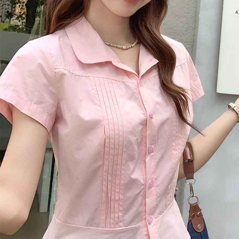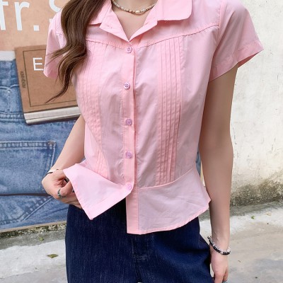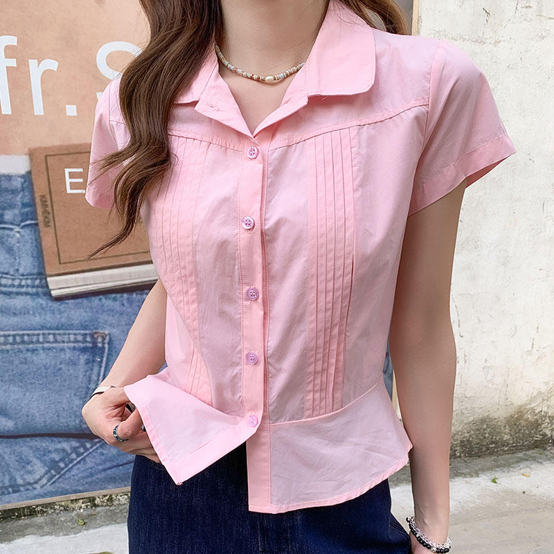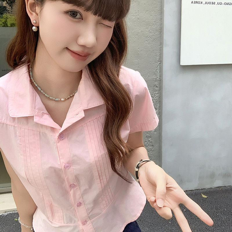 폴로 칼라 핑크 짧은 슬리브 셔츠 2025 여름