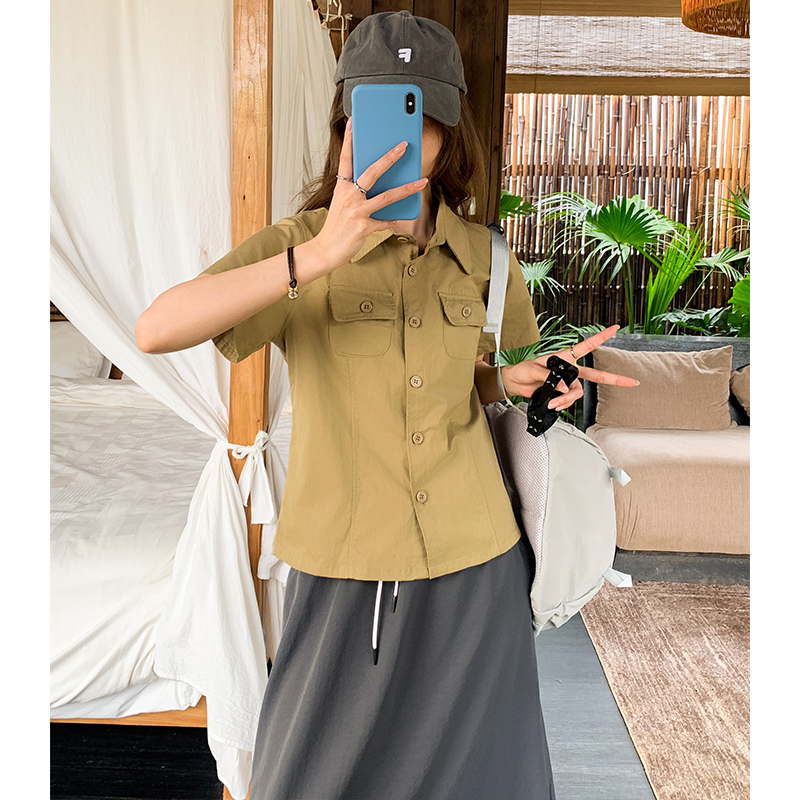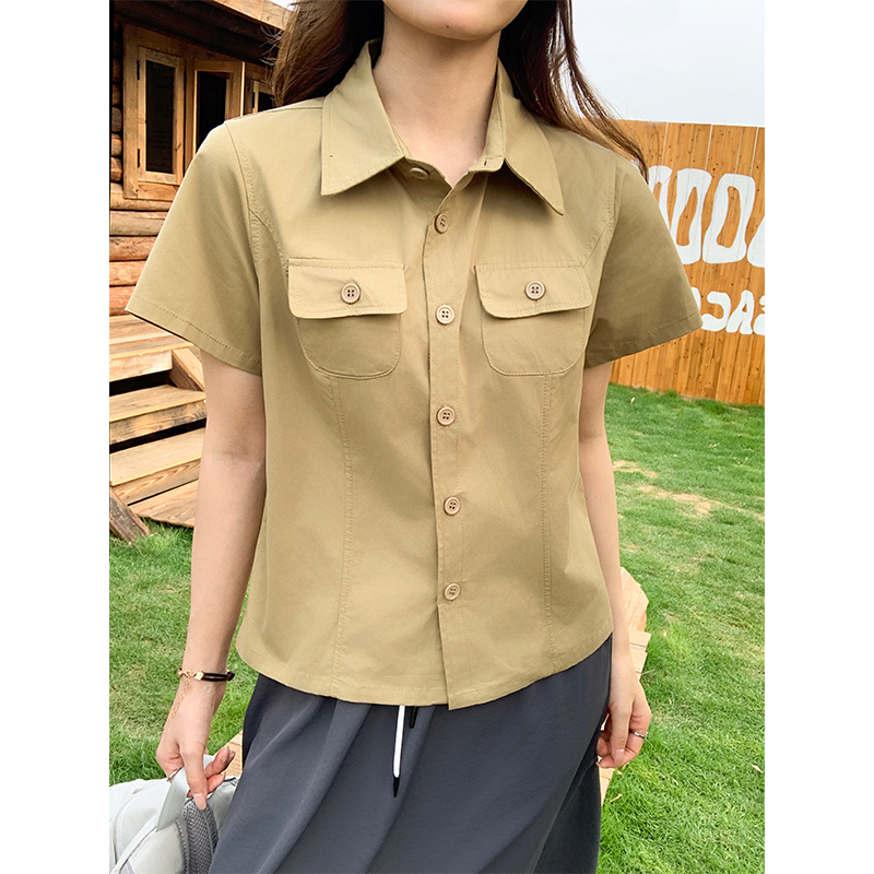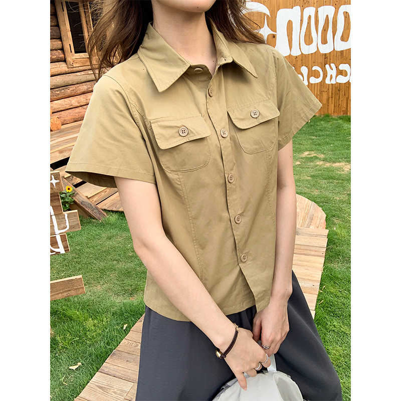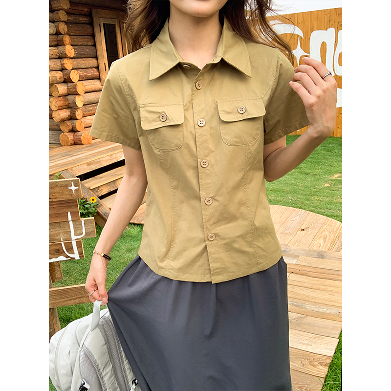 실제 사진 Real-Price 레트로 작업복 여름에 여성을위한 짧은팔 셔츠 2025 New Design Versatile Short Top