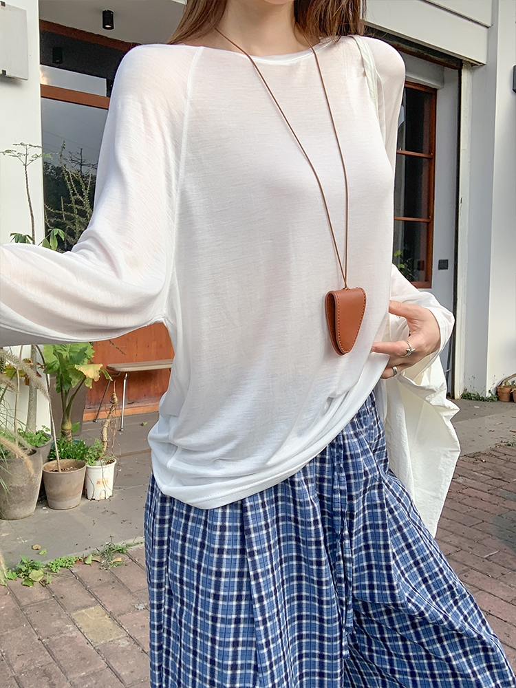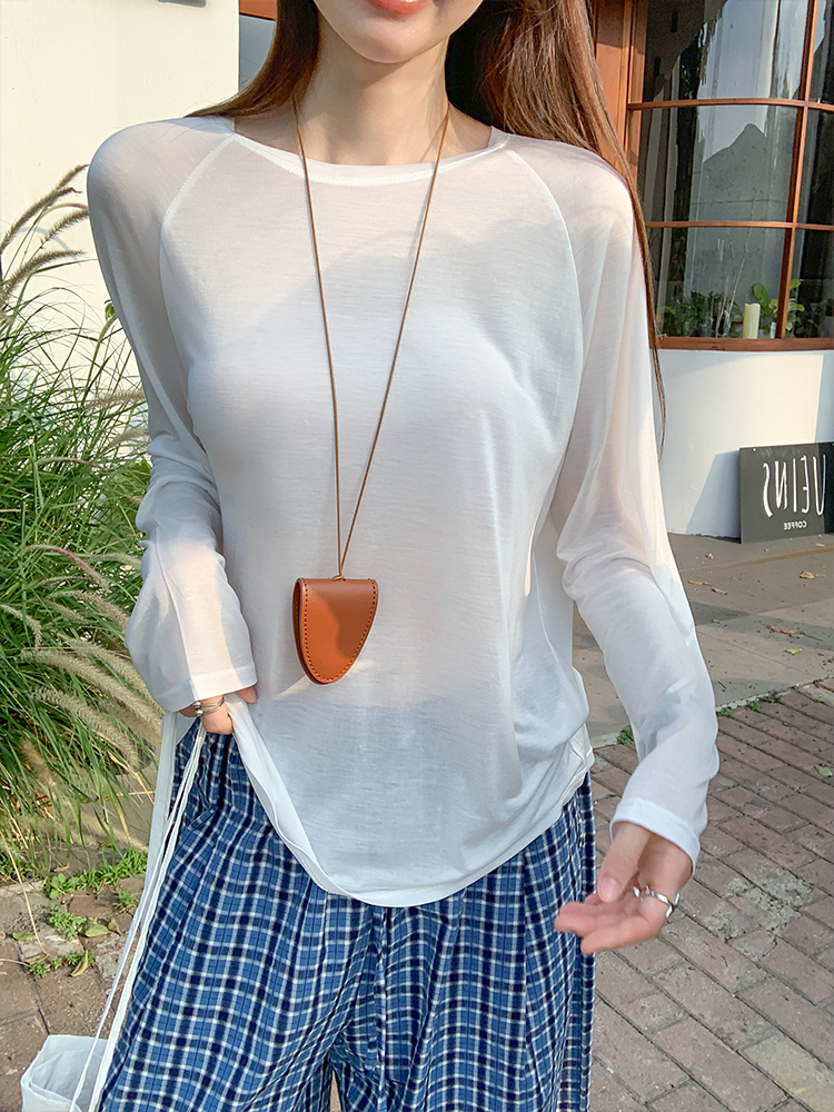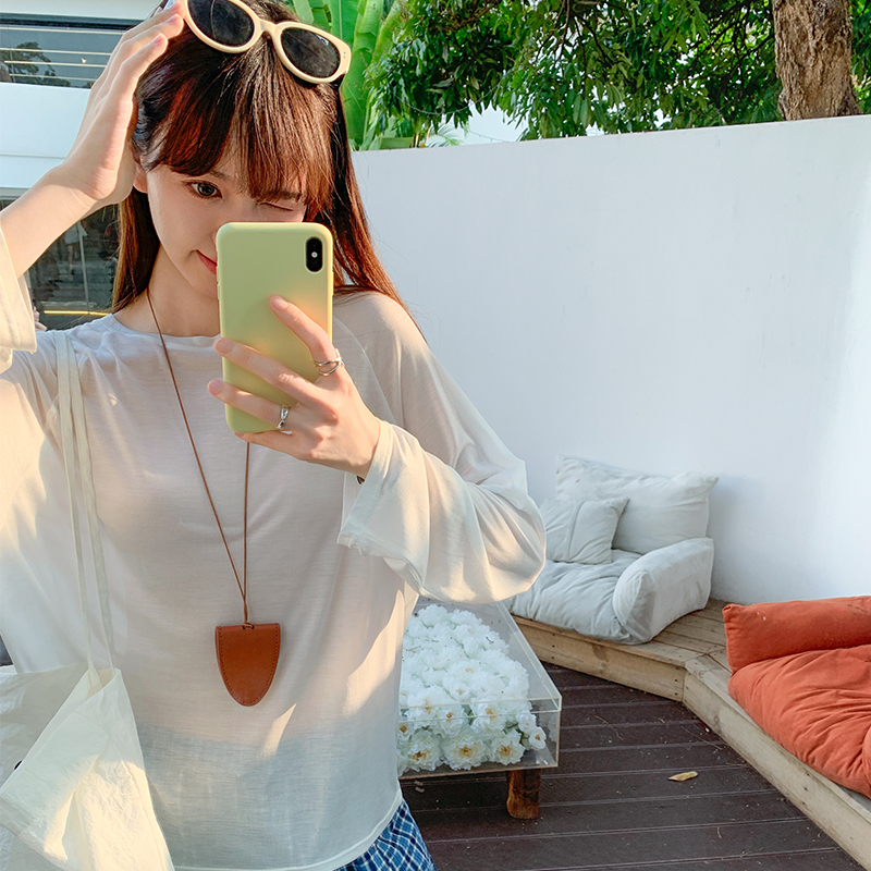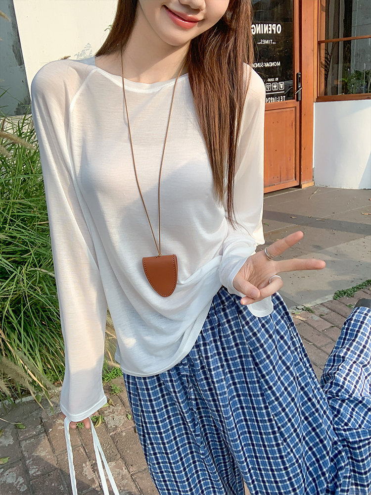 실제 가격#흰색 긴팔 선 스크린 블라우스 여름에 여성을위한 2025 년 새로운 다목적 느슨한 얇은 탑